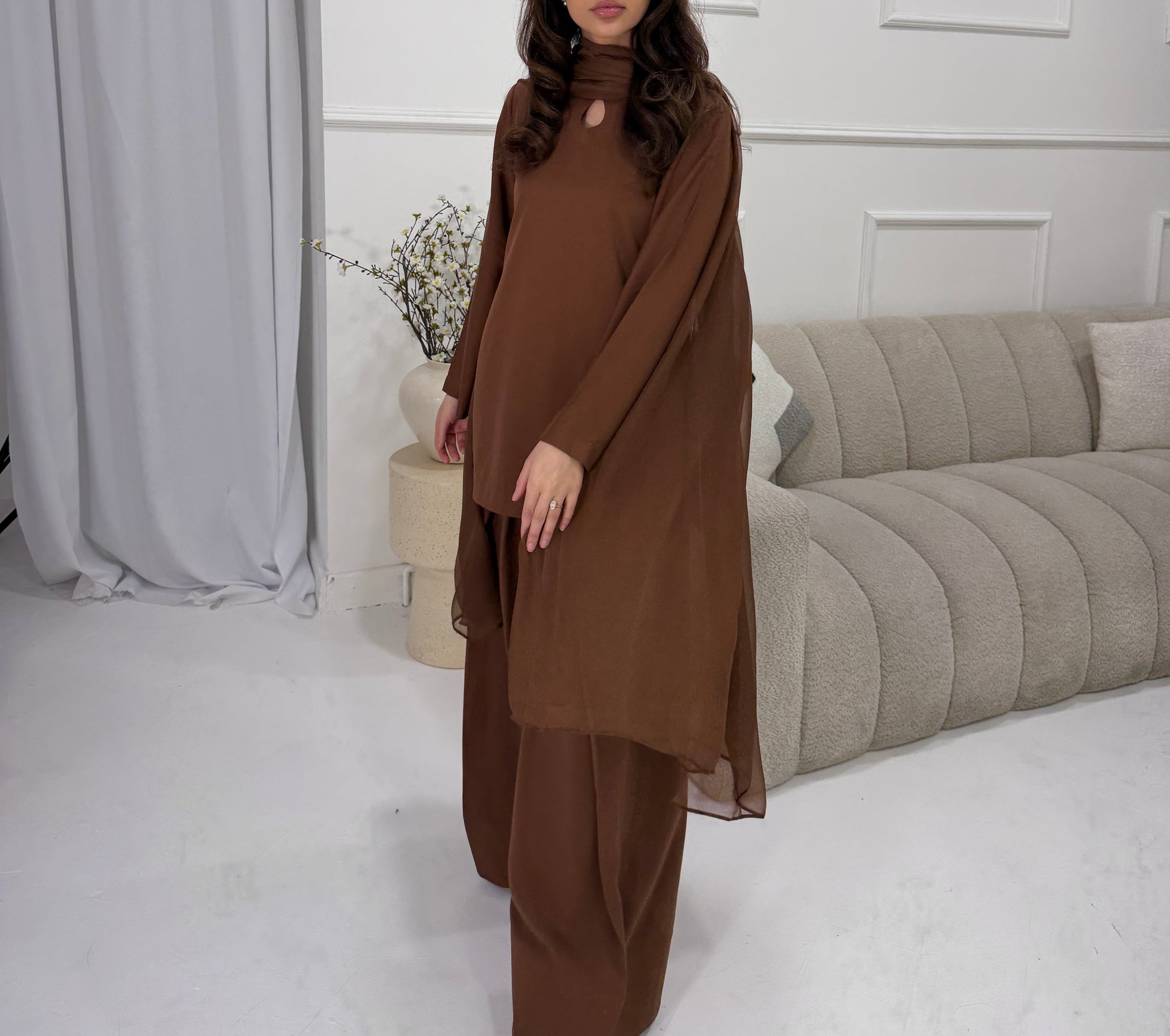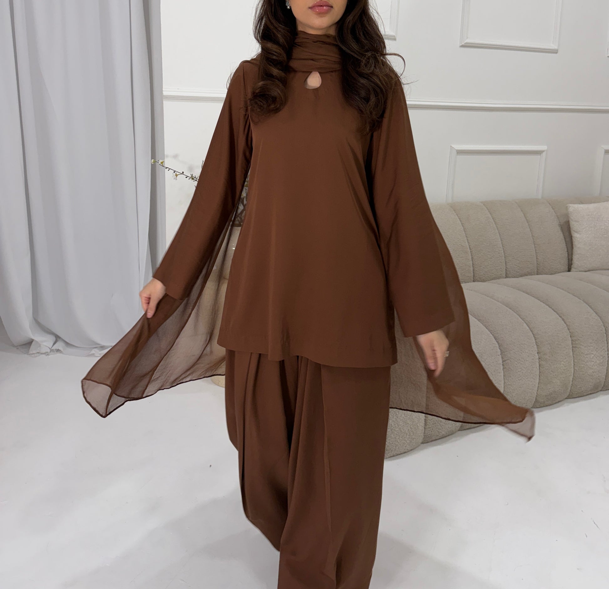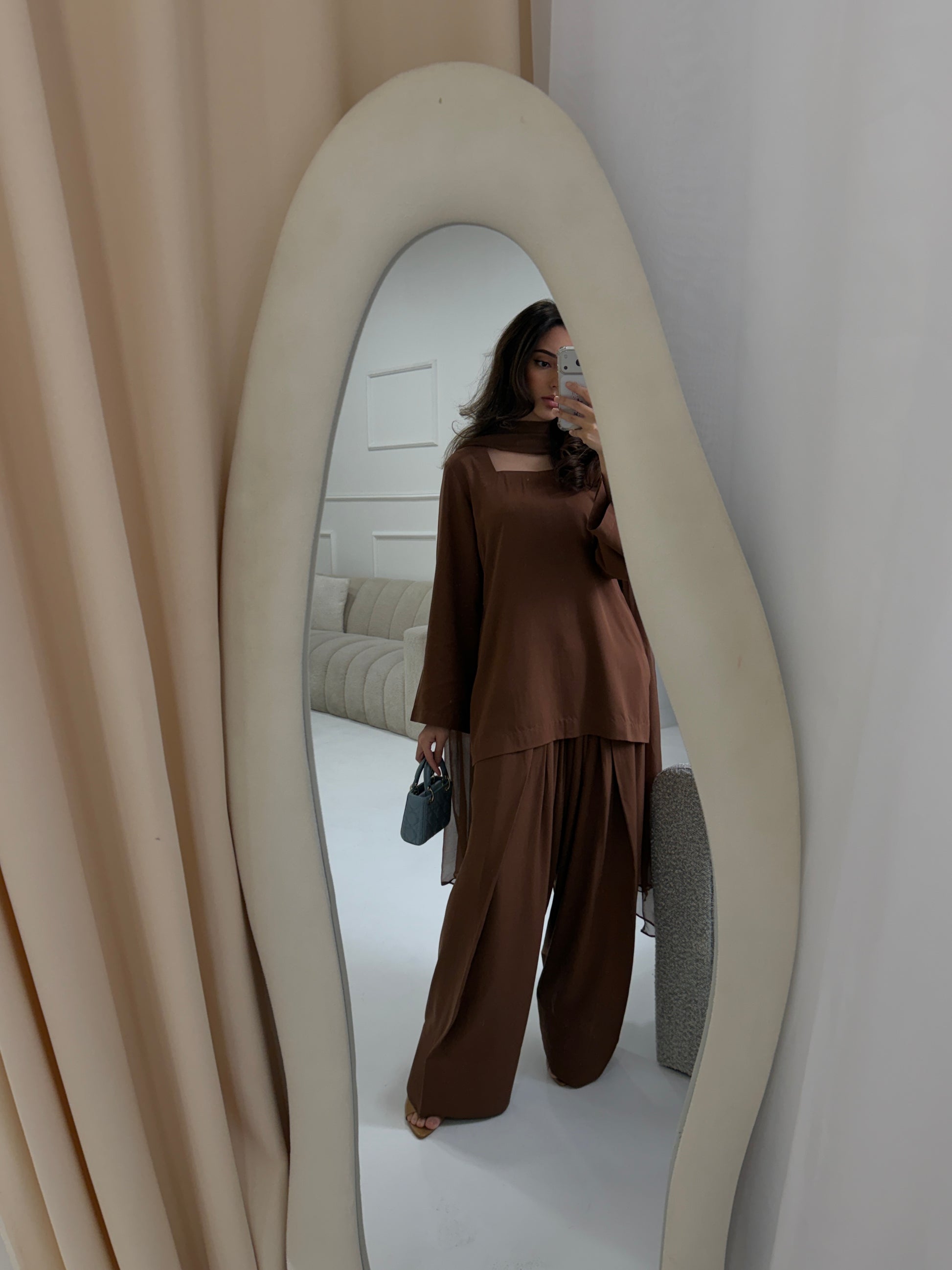 Featuring a refined square neckline or key hole neckline and completed with a light, airy dupatta, this set brings together structure, softness, and effortless sophistication.